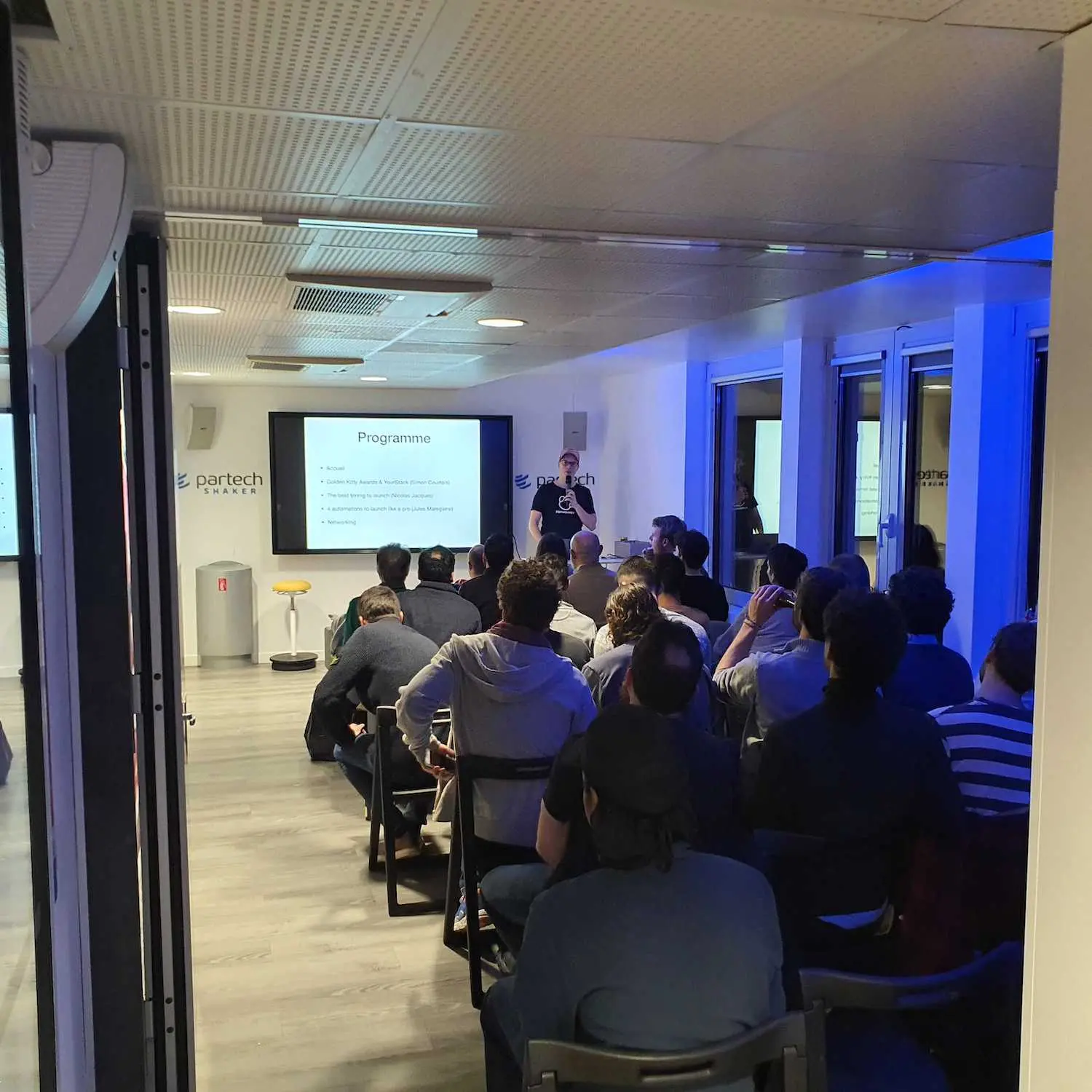 Securing a venue was a bit trickier than the first time. We needed more sits, and we lost some time with a first location to finally learn it wasn’t going to be possible. In the end we managed to secure a spot at the Partech Shaker, the room was just right and surrounded by an amazing rooftop with a panoramic view on Paris. Awesome!