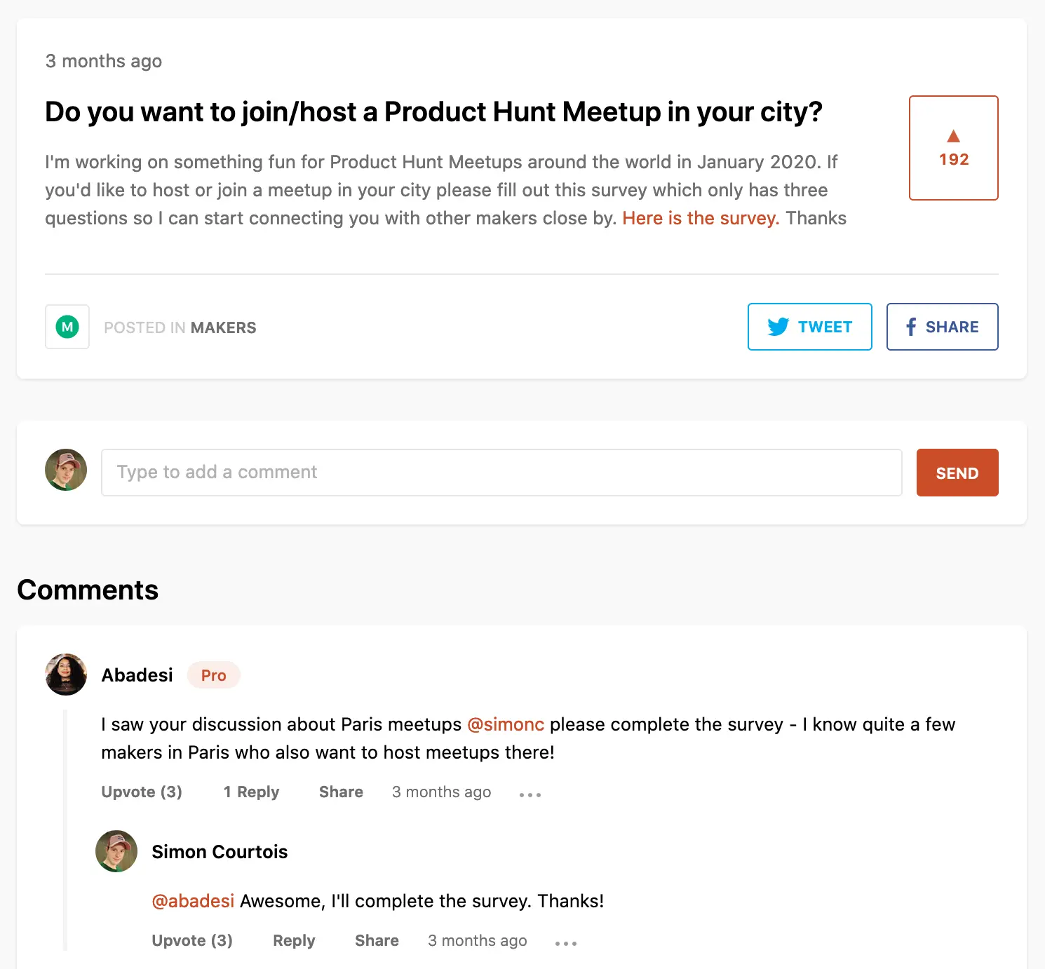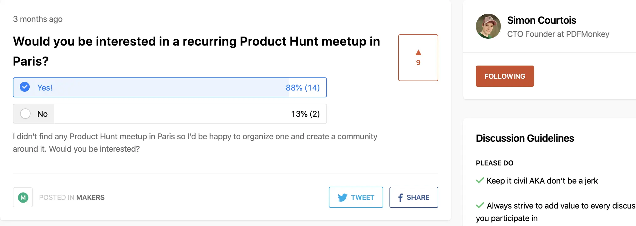 In the meantime we asked makers on Product Hunt if they’d be interested in a meetup in Paris.
