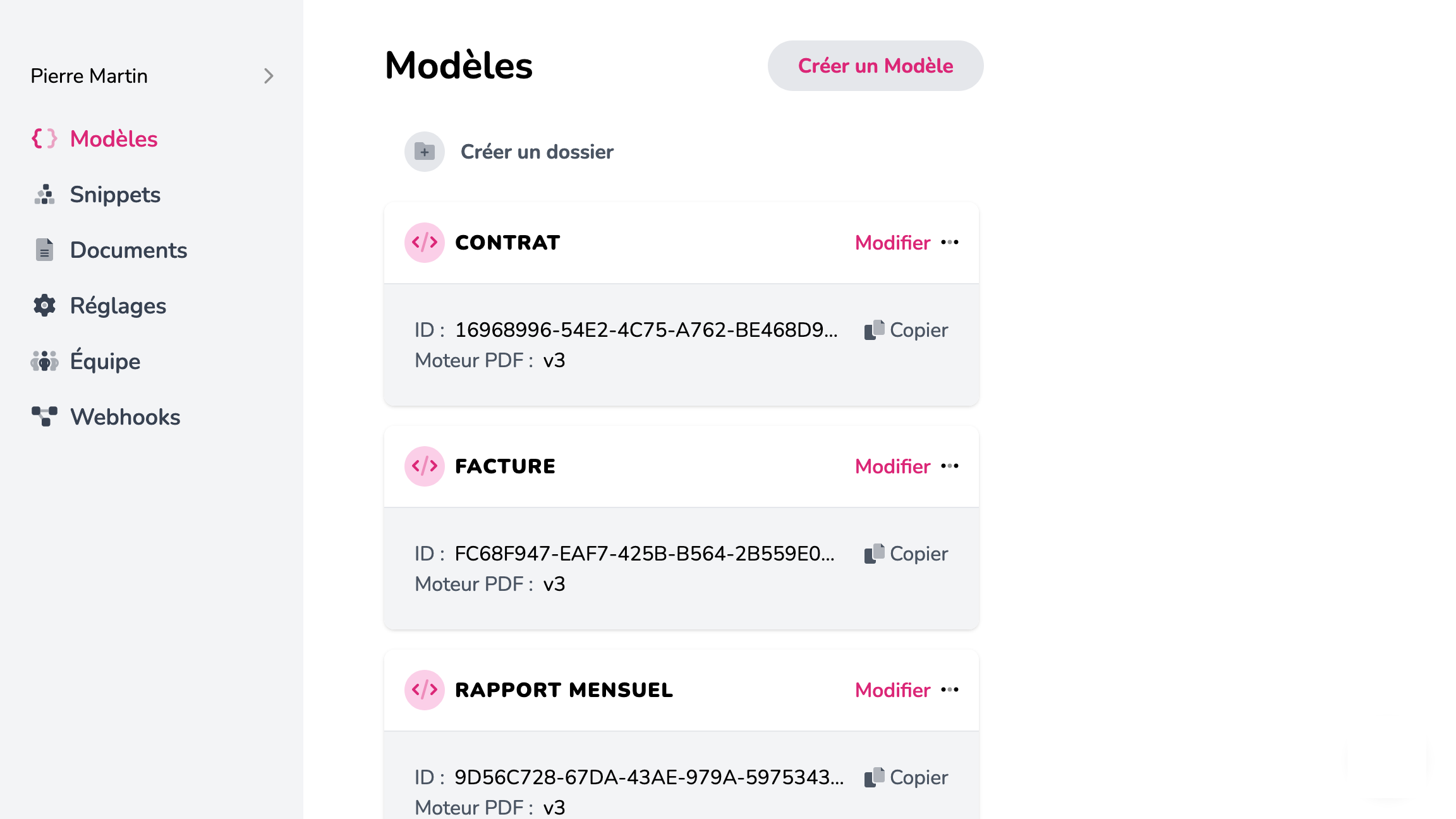 Gérez vos modèles de documents depuis votre Tableau de bord.
